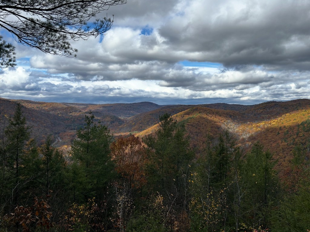 Nestled in the Berkshire Mountains in western Massachusetts, this 2,000- acre public state forest sits in the towns of Chester and Blandford Massachusetts. The view at the top of the overlook located along the Sanderson Brook Falls Loop trail is a must see to any Berkshire hiker. The colors of fall turn an amazing view into a special site unique to western Massachusetts. The land was originally acquired in 1924 from a few lumber companies. The forest features ruins from an old mining operation, a stunning overlook and a 60ft cascade at Sanderson Brook.